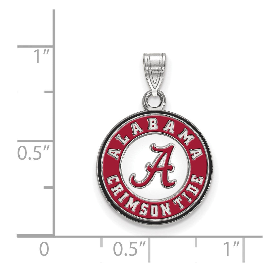 Sterling Silver Rhodium-plated LogoArt University of Alabama Crimson Tide Medium Enameled Disc Pendant