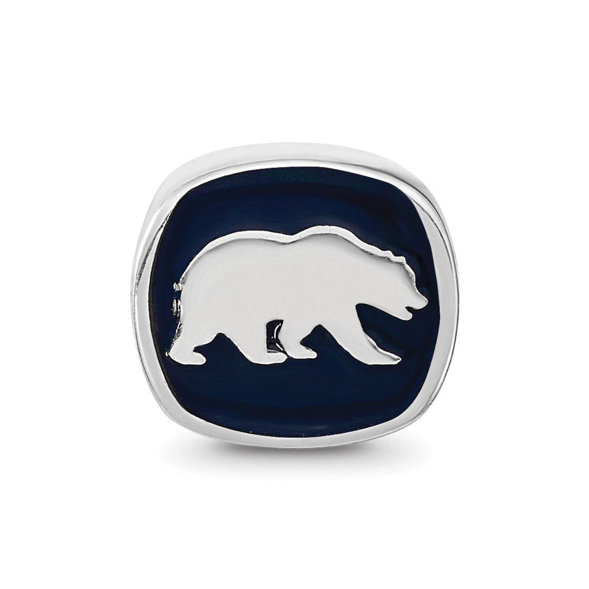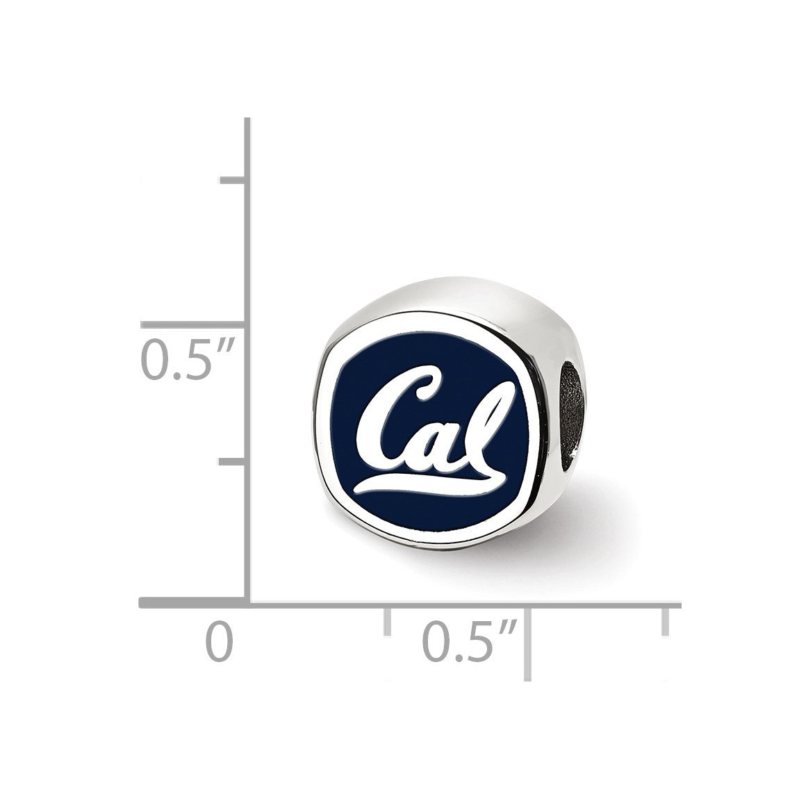 Sterling Silver Rhodium-plated LogoArt University of California Berkeley Bear/Cal Double Logo Enameled Bead