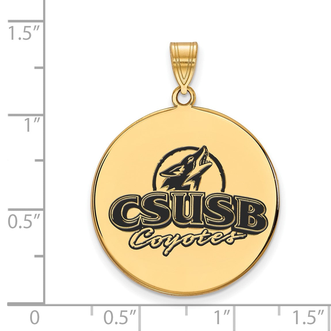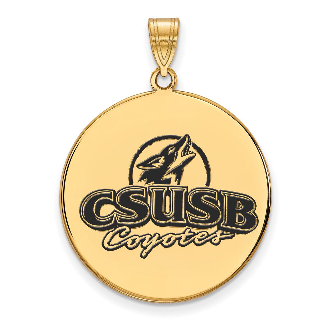Sterling Silver Gold-plated LogoArt California State University San Bernardino Coyotes Extra Large Enameled Disc Pendant