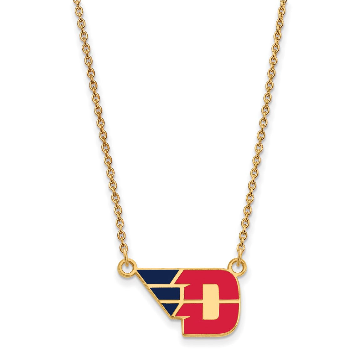 Sterling Silver Gold-plated LogoArt University of Dayton Small Enameled Pendant 18 inch Necklace