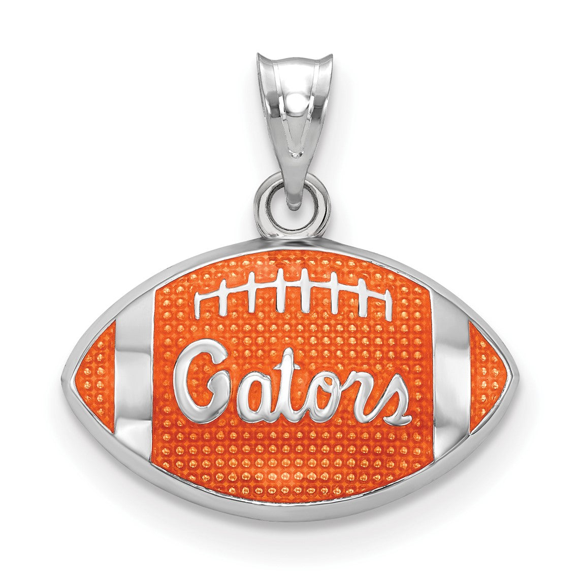 Sterling Silver Rhodium-plated LogoArt University of Florida Gators Script Enameled Football Pendant