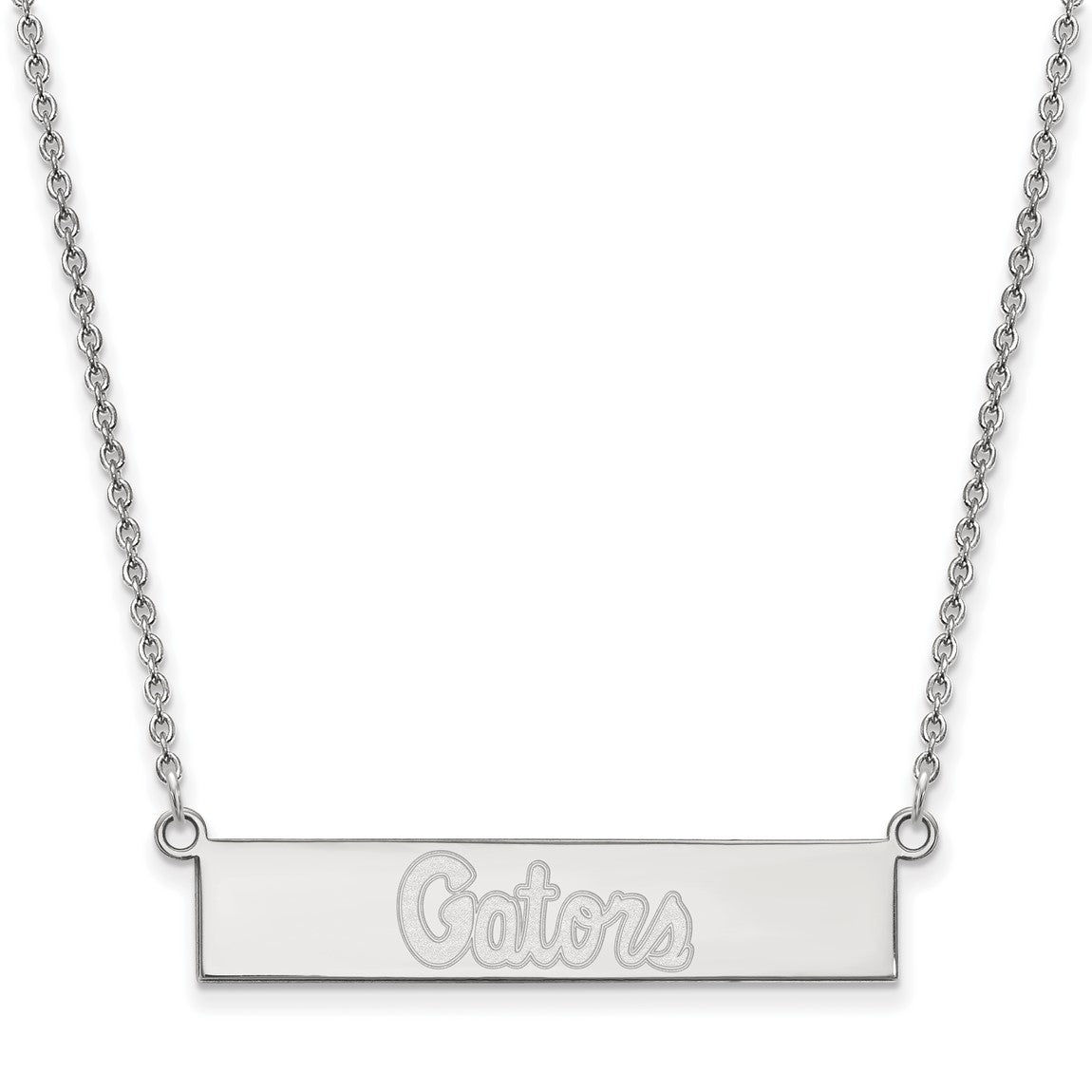 Sterling Silver Rhodium-plated LogoArt University of Florida Gators Script Small Bar 18 inch Necklace