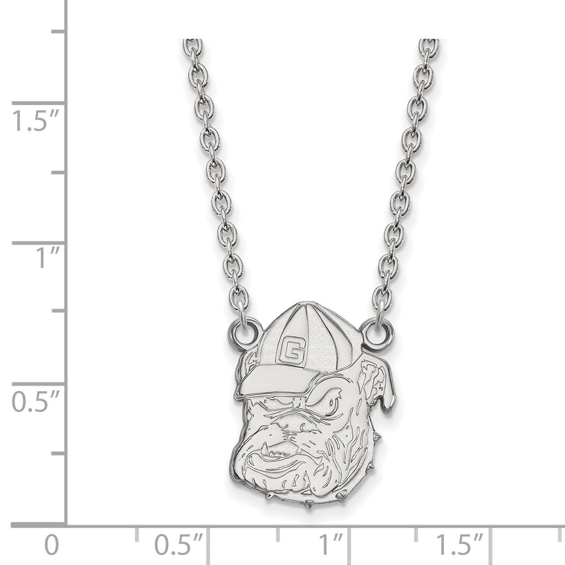 10k White Gold LogoArt University of Georgia Bulldog Large Pendant 18 inch Necklace