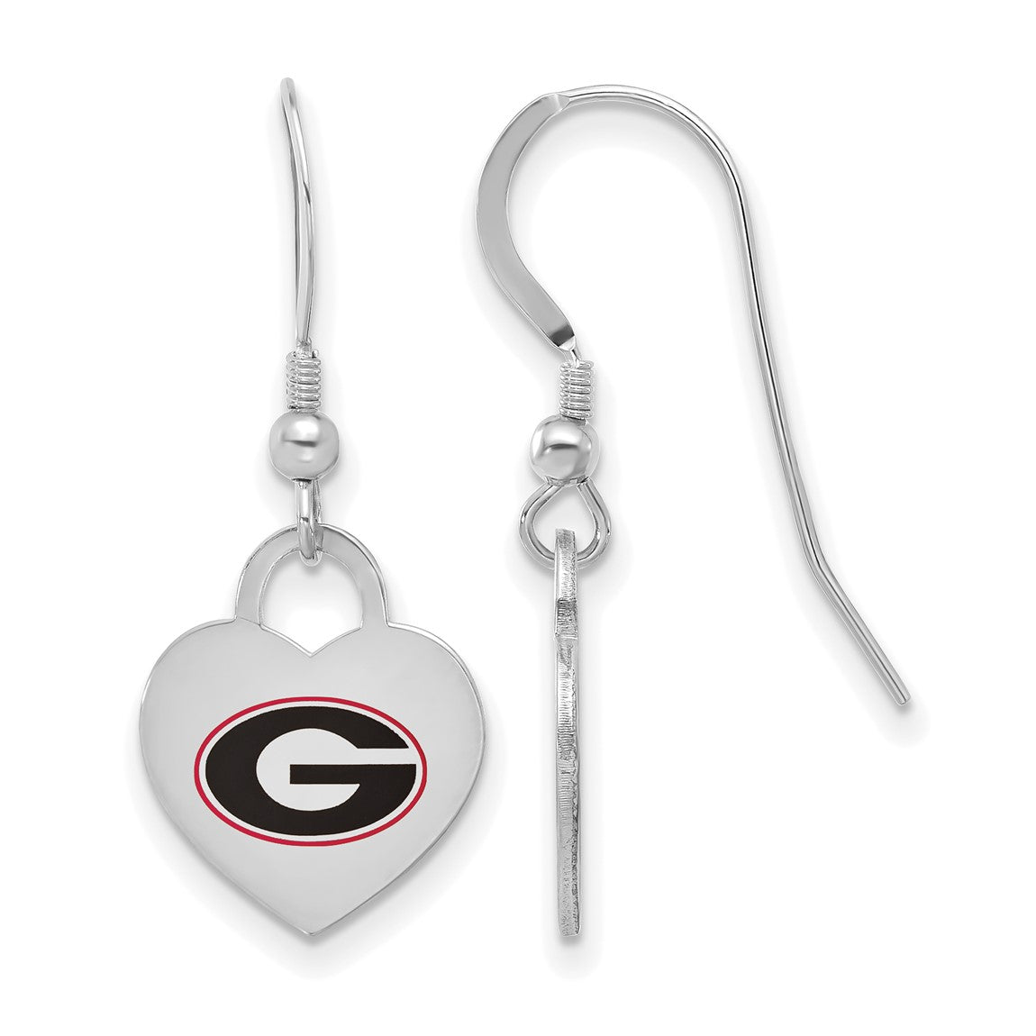 Sterling Silver Rhodium-plated LogoArt University of Georgia Enamel Heart Dangle Earrings