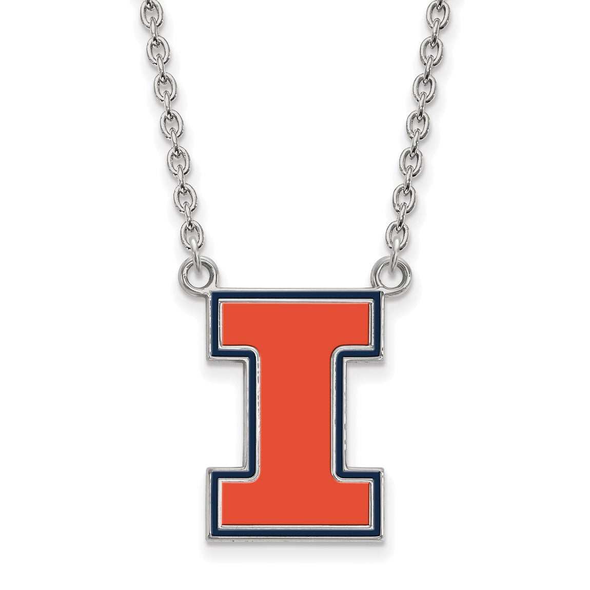 Sterling Silver Rhodium-plated LogoArt University of Illinois Letter I Large Enameled Pendant 18 inch Necklace