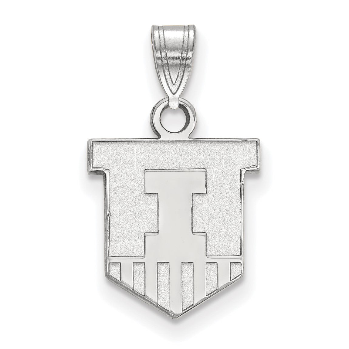 Sterling Silver Rhodium-plated LogoArt University of Illinois Victory Badge Small Pendant