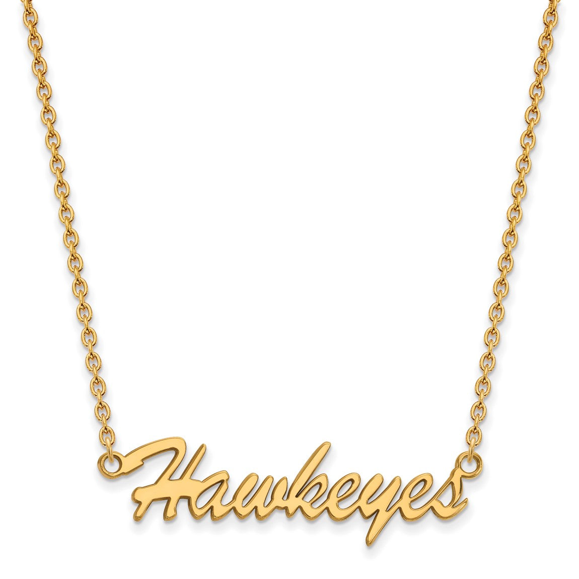 Sterling Silver Gold-plated LogoArt University of Iowa Hawkeyes Script Medium Pendant 18 inch Necklace