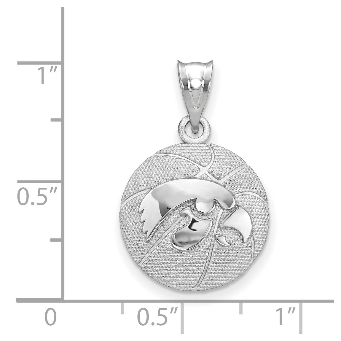 Sterling Silver Rhodium-plated LogoArt The University of Iowa Hawk Basketball Pendant