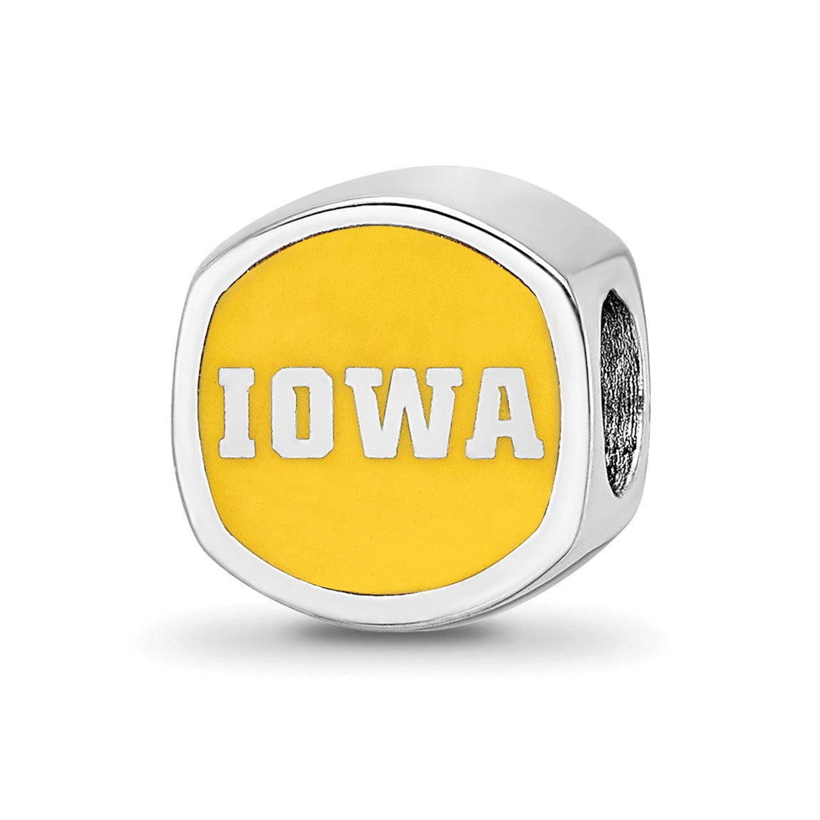 Sterling Silver Rhodium-plated LogoArt University of Iowa Double Logo Enameled Bead