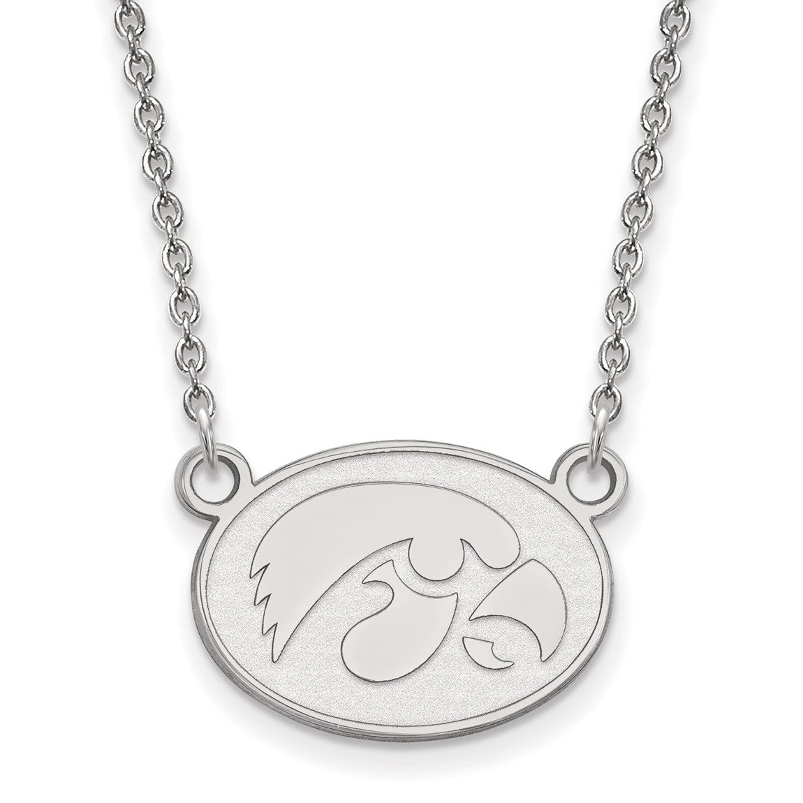 Sterling Silver Rhodium-plated LogoArt University of Iowa Hawk Small Oval Pendant 18 inch Necklace