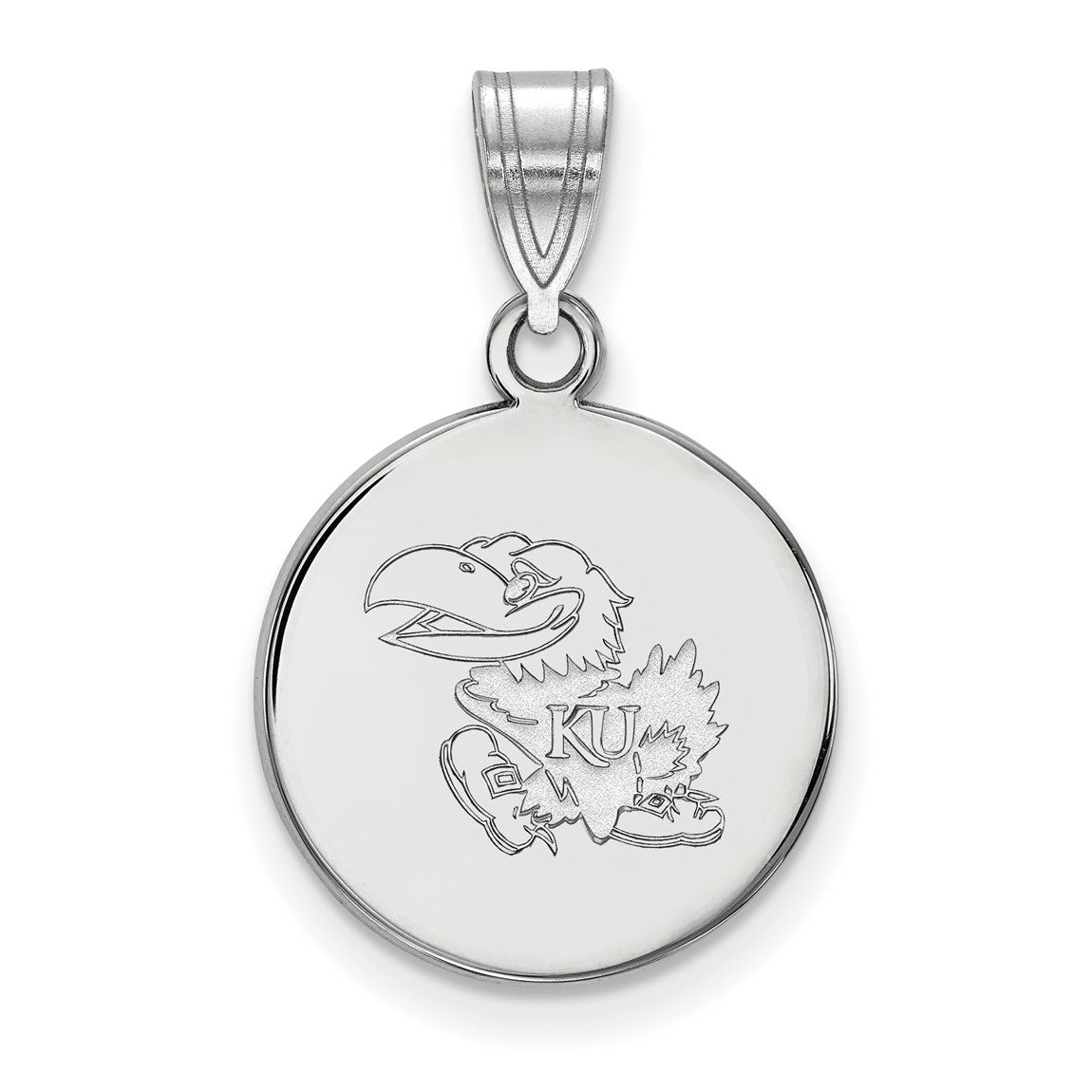 10k White Gold LogoArt University of Kansas Jayhawk Medium Disc Pendant