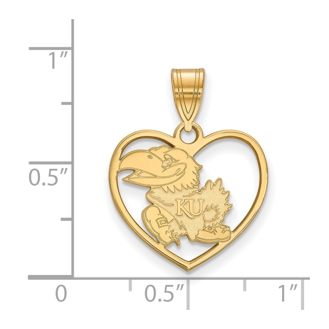 Sterling Silver Gold-plated LogoArt University of Kansas Jayhawk Heart Pendant