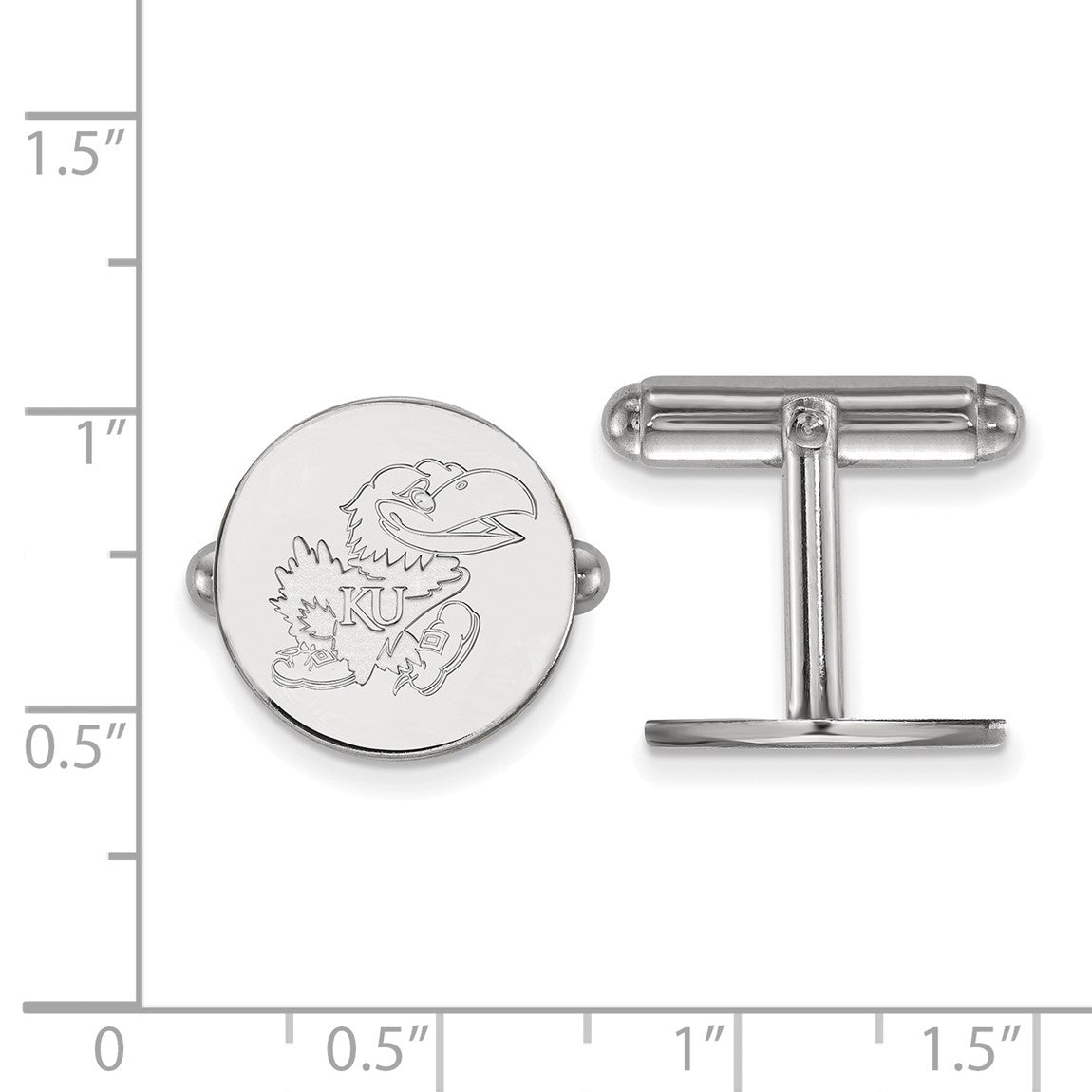 Sterling Silver Rhodium-plated LogoArt University of Kansas Jayhawk Cuff Links SS071UKS
