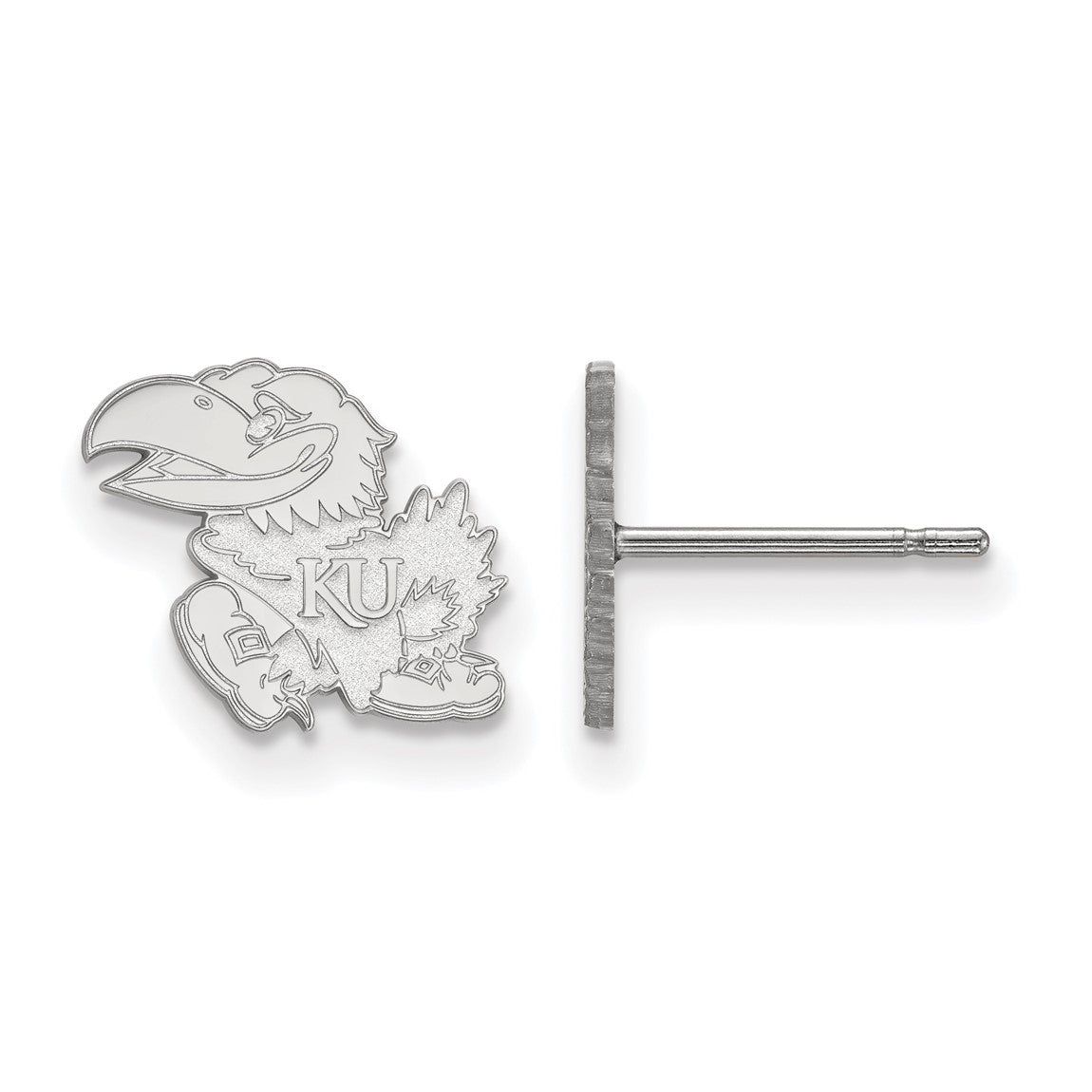 Sterling Silver Rhodium-plated LogoArt University of Kansas Jayhawk Extra Small Post Earrings SS008UKS