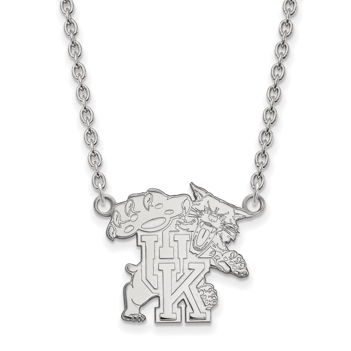 14k White Gold LogoArt University of Kentucky U-K Wildcat Large Pendant 18 inch Necklace