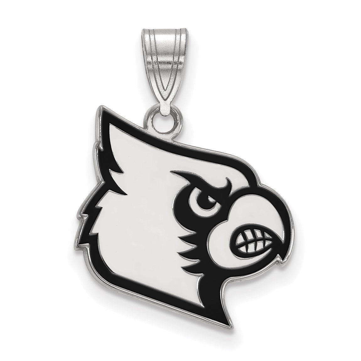 Sterling Silver Rhodium-plated LogoArt University of Louisville Cardinal Large Enameled Pendant