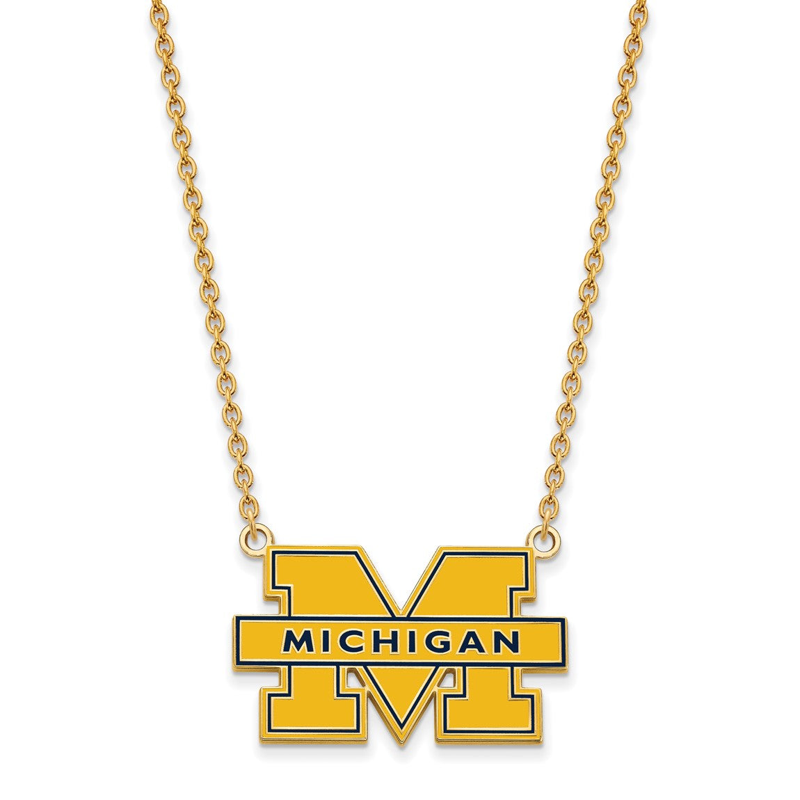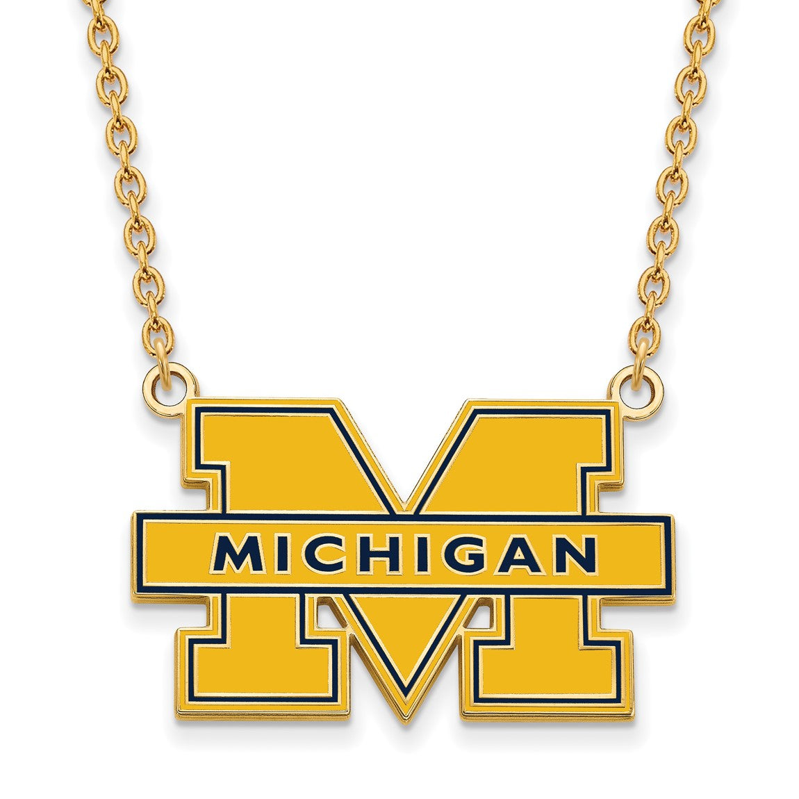 Sterling Silver Gold-plated LogoArt University of Michigan Letter M Large Blue Enameled Pendant 18 inch Necklace