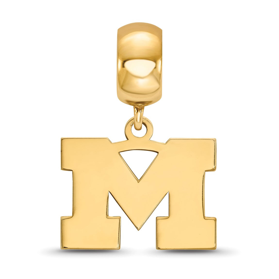 Sterling Silver Gold-plated LogoArt University of Michigan Letter M Small Dangle Bead Charm