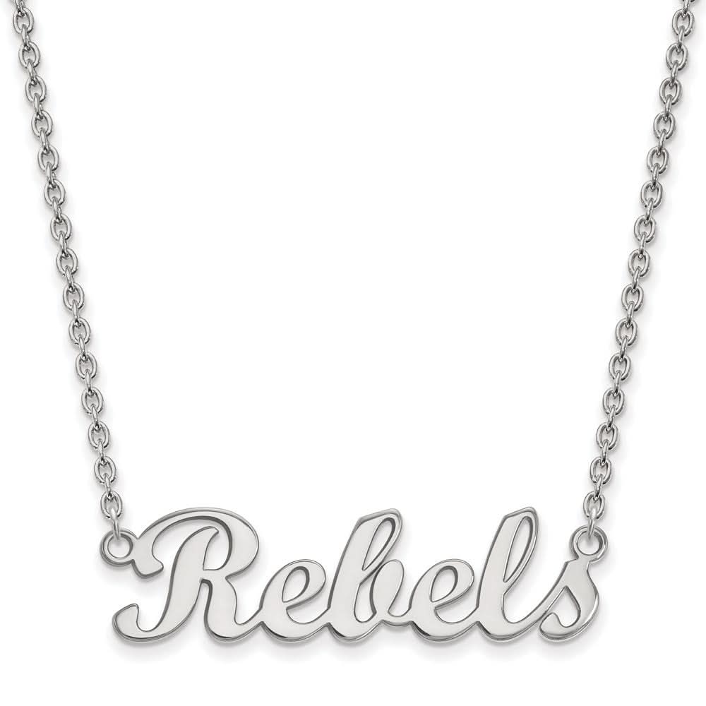 14k White Gold LogoArt University of Mississippi Rebels Script Bar 18 inch Necklace