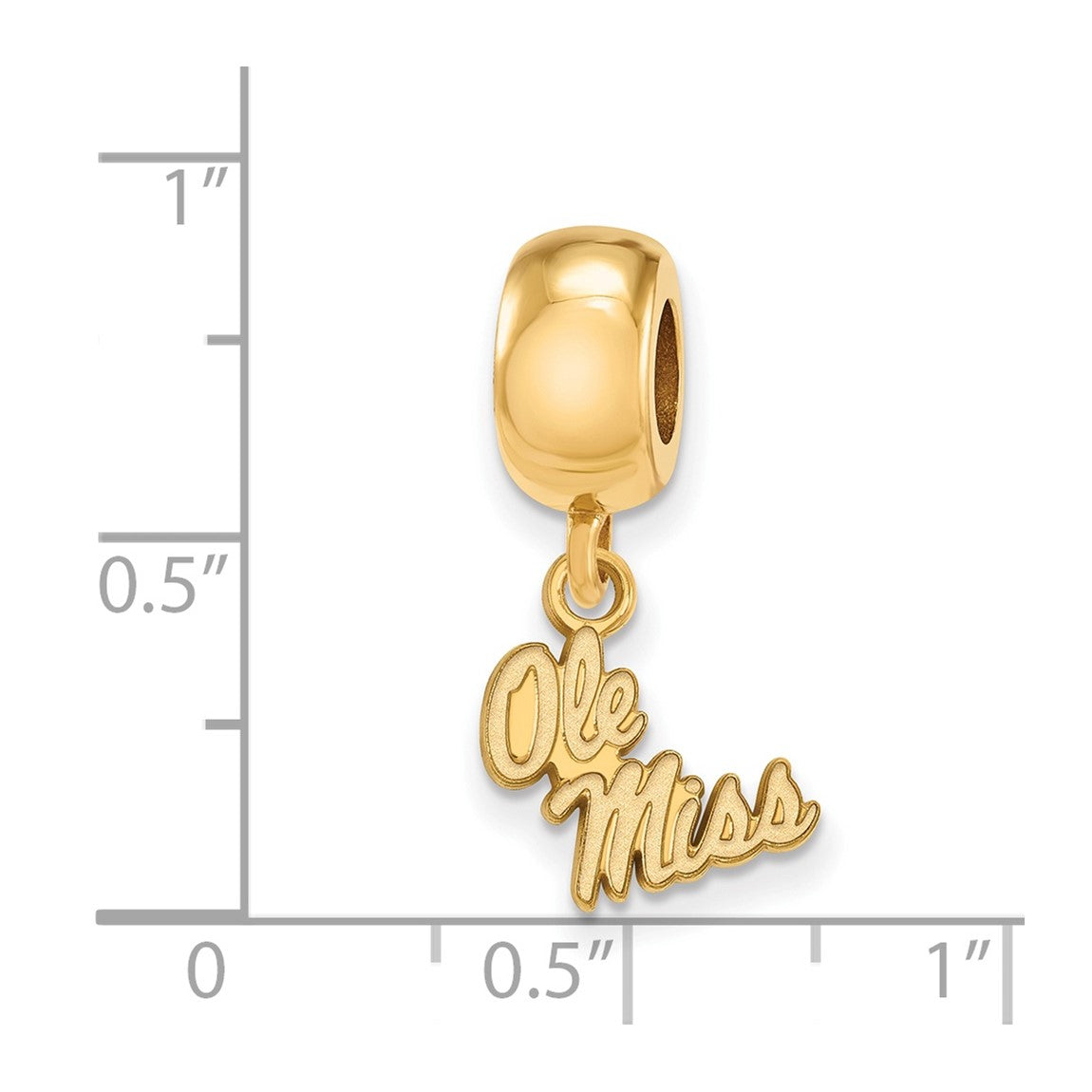 Sterling Silver Gold-plated LogoArt University of Mississippi Ole Miss Extra Small Dangle Bead Charm