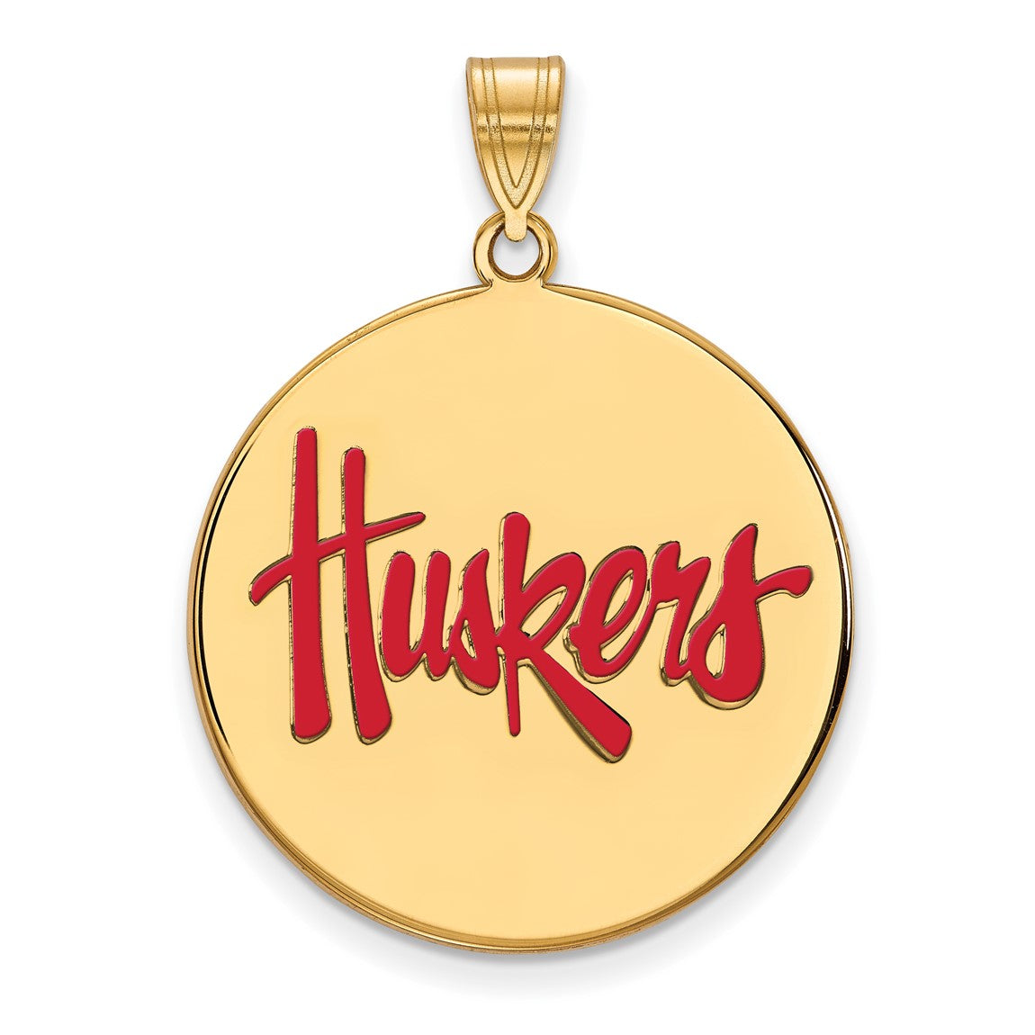 Sterling Silver Gold-plated LogoArt University of Nebraska Huskers Extra Large Enameled Disc Pendant