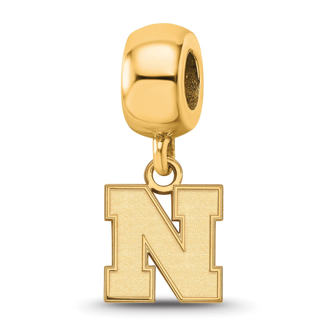 Sterling Silver Gold-plated LogoArt University of Nebraska Letter N Extra Small Dangle Bead Charm