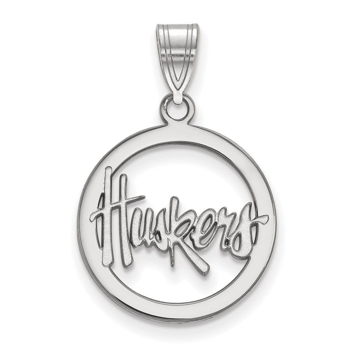 Sterling Silver Rhodium-plated LogoArt University of Nebraska Huskers Small Circle Pendant