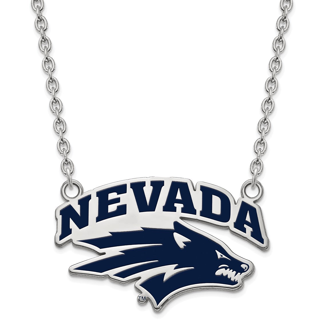 Sterling Silver Rhodium-plated LogoArt University of Nevada-Reno Large Enameled Pendant 18 inch Necklace