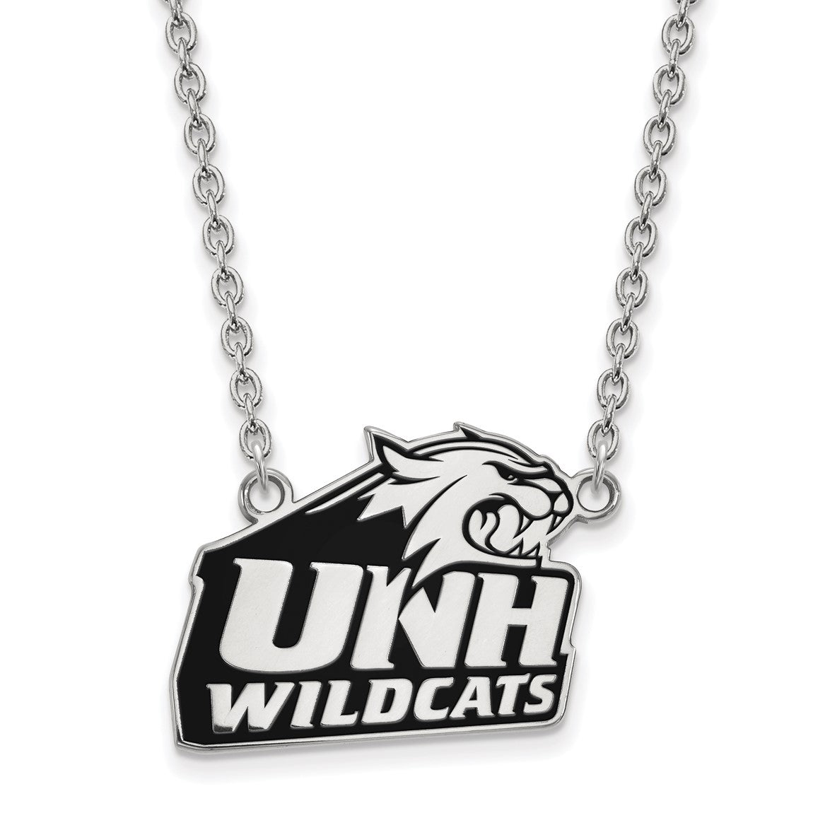 Sterling Silver Rhodium-plated LogoArt University of New Hampshire Large Enameled Pendant 18 inch Necklace