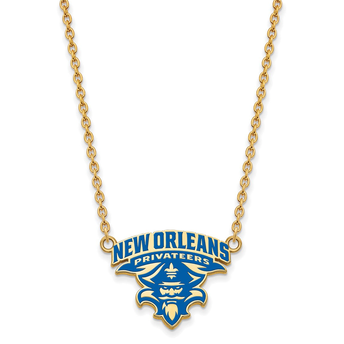 Sterling Silver Gold-plated LogoArt University of New Orleans U-N-O Large Enameled Pendant 18 inch Necklace