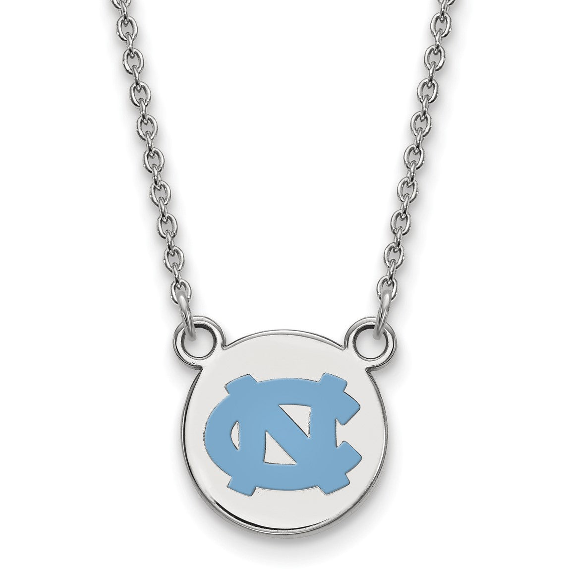 Sterling Silver Rhodium-plated LogoArt University of North Carolina Small Enameled Disc Pendant 18 inch Necklace