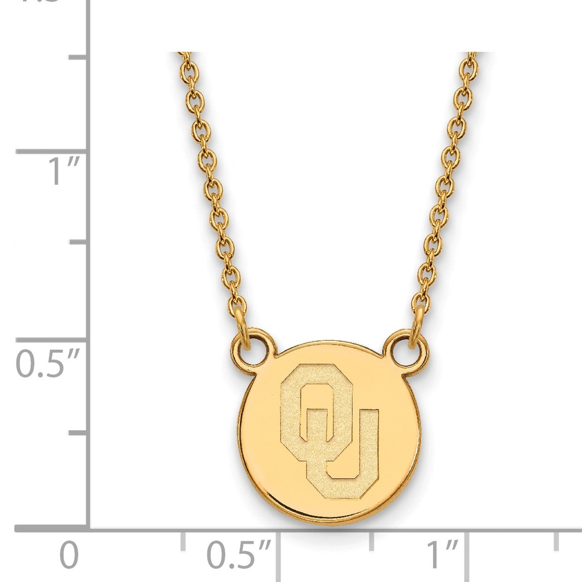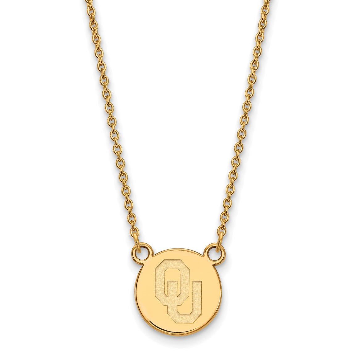 Sterling Silver Gold-plated LogoArt University of Oklahoma O-U Small Disc 18 inch Necklace