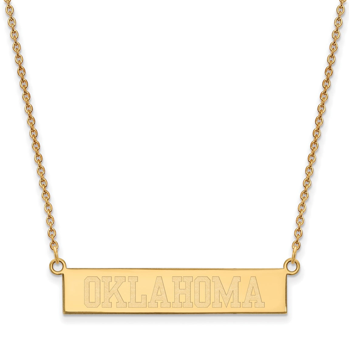 Sterling Silver Gold-plated LogoArt University of Oklahoma Small Bar 18 inch Necklace