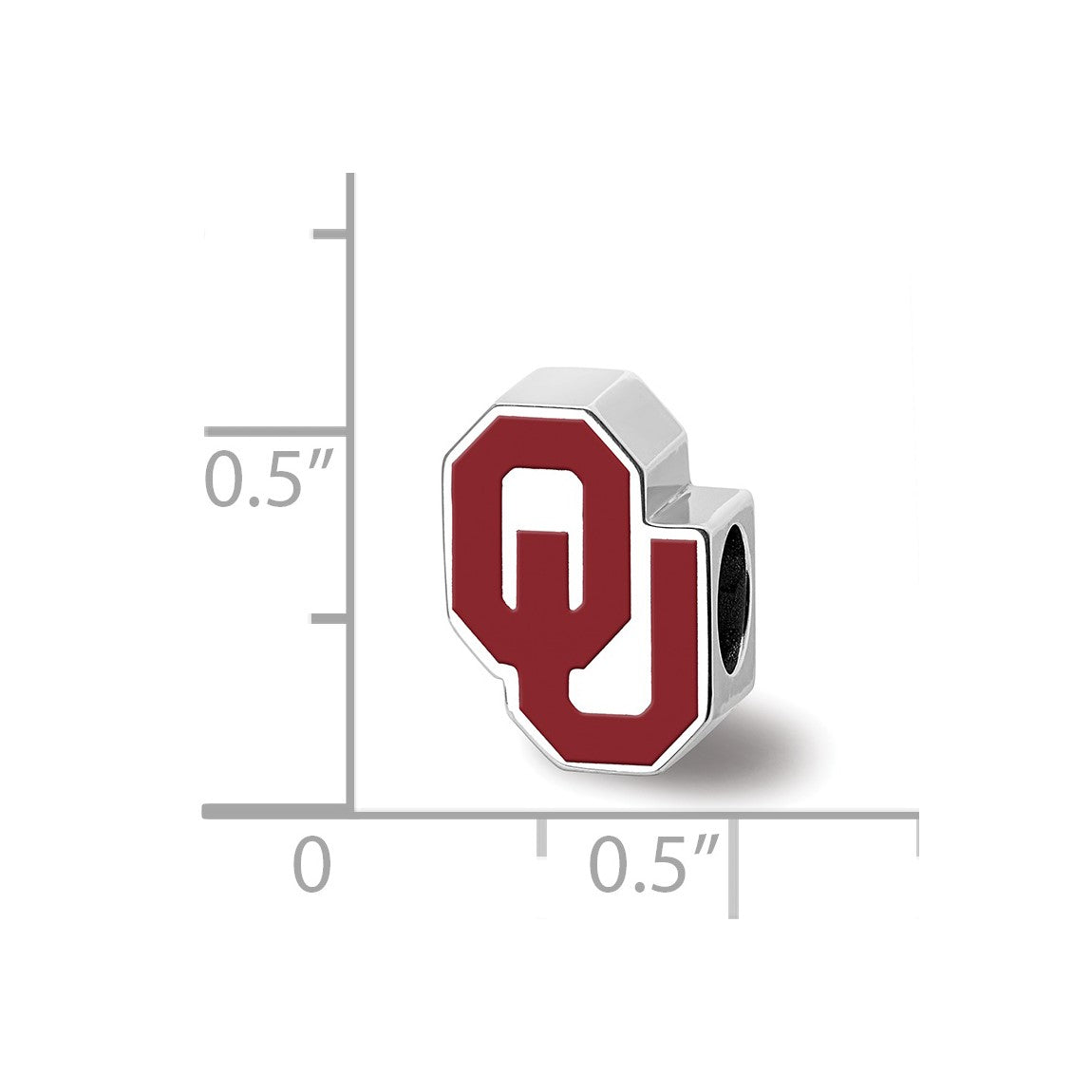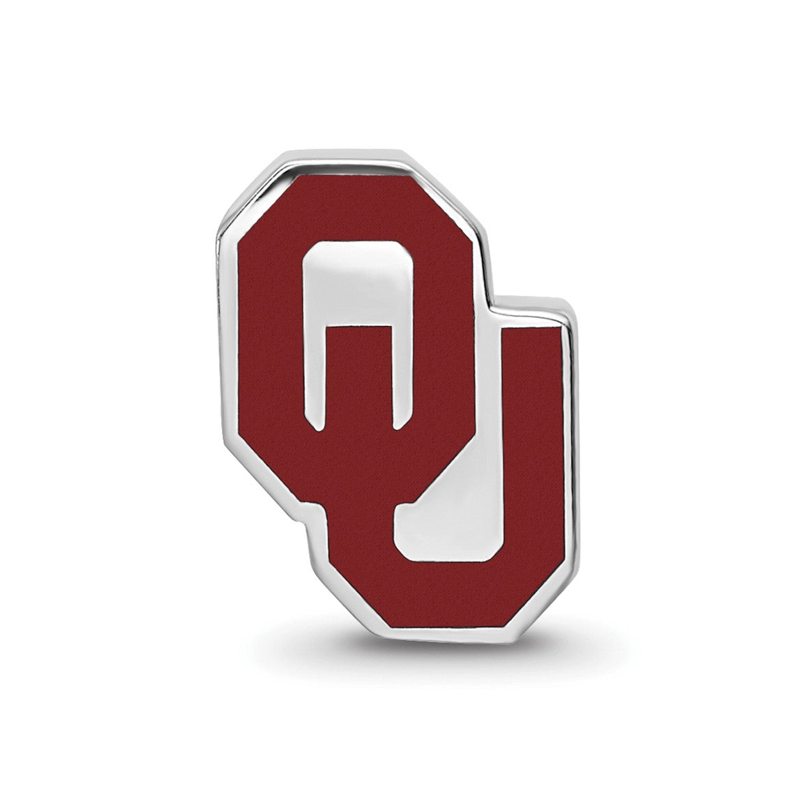 Sterling Silver Rhodium-plated LogoArt University of Oklahoma O-U 1-sided Enameled Bead