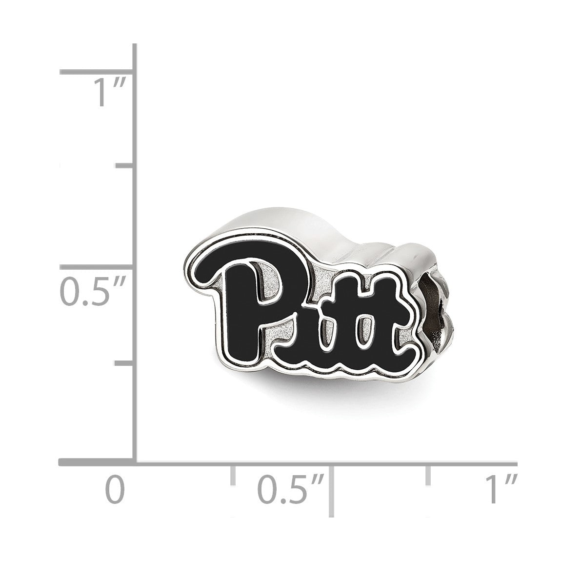Sterling Silver Rhodium-plated LogoArt University of Pittsburgh Pitt Script Enameled Logo Bead