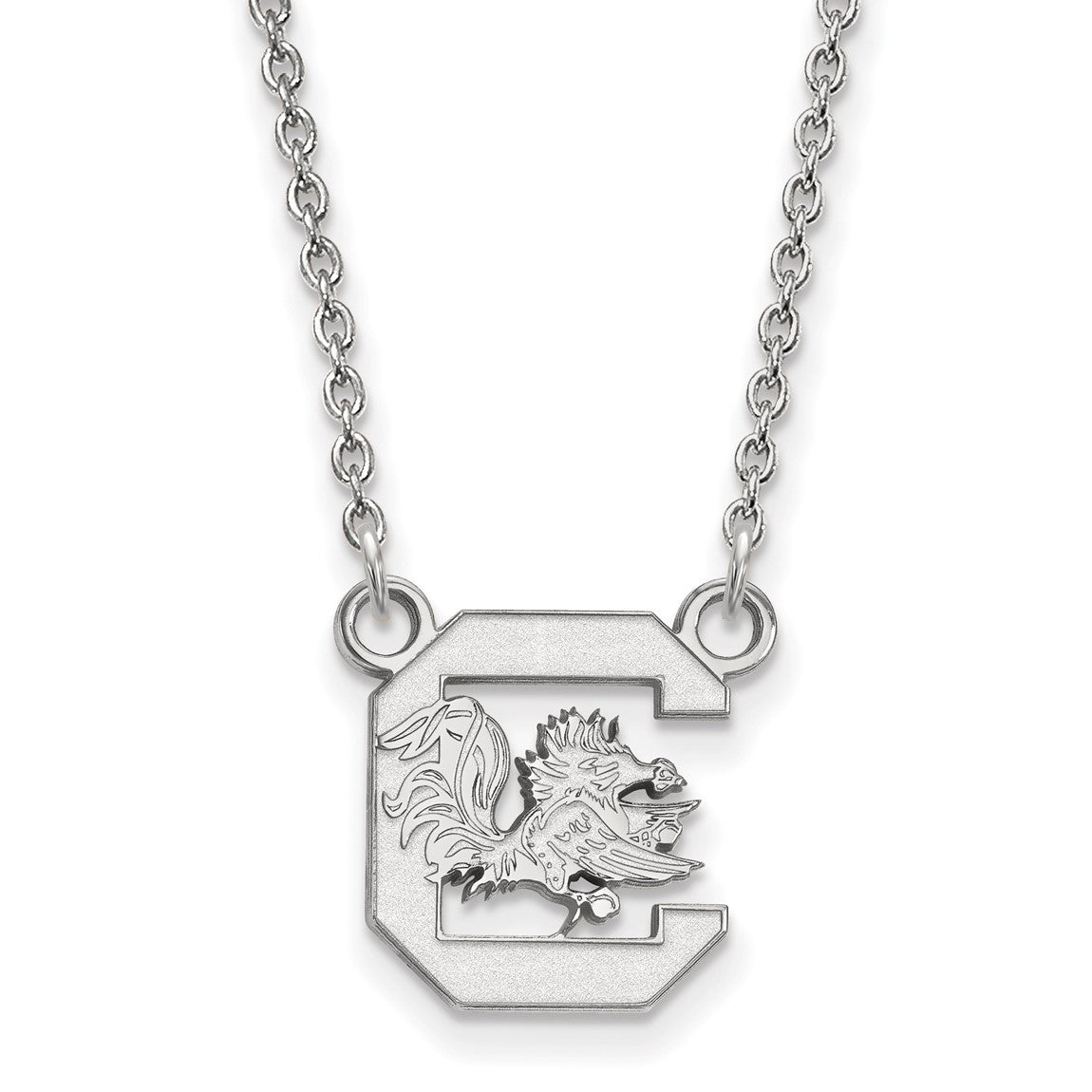 14k White Gold LogoArt University of South Carolina Small Pendant 18 inch Necklace