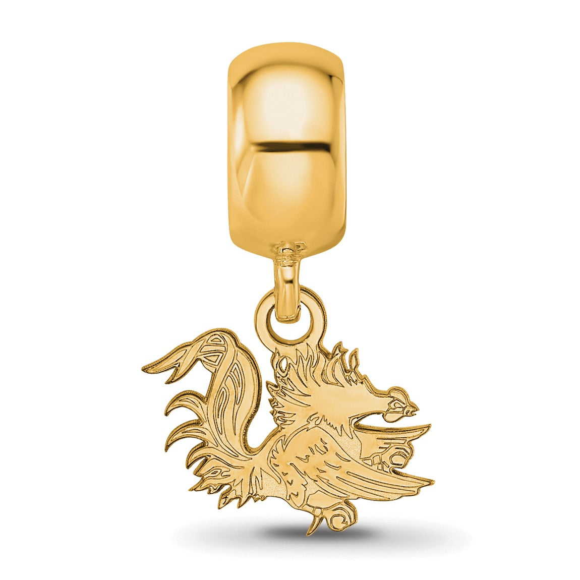 Sterling Silver Gold-plated LogoArt University of South Carolina Gamecock Extra Small Dangle Bead Charm