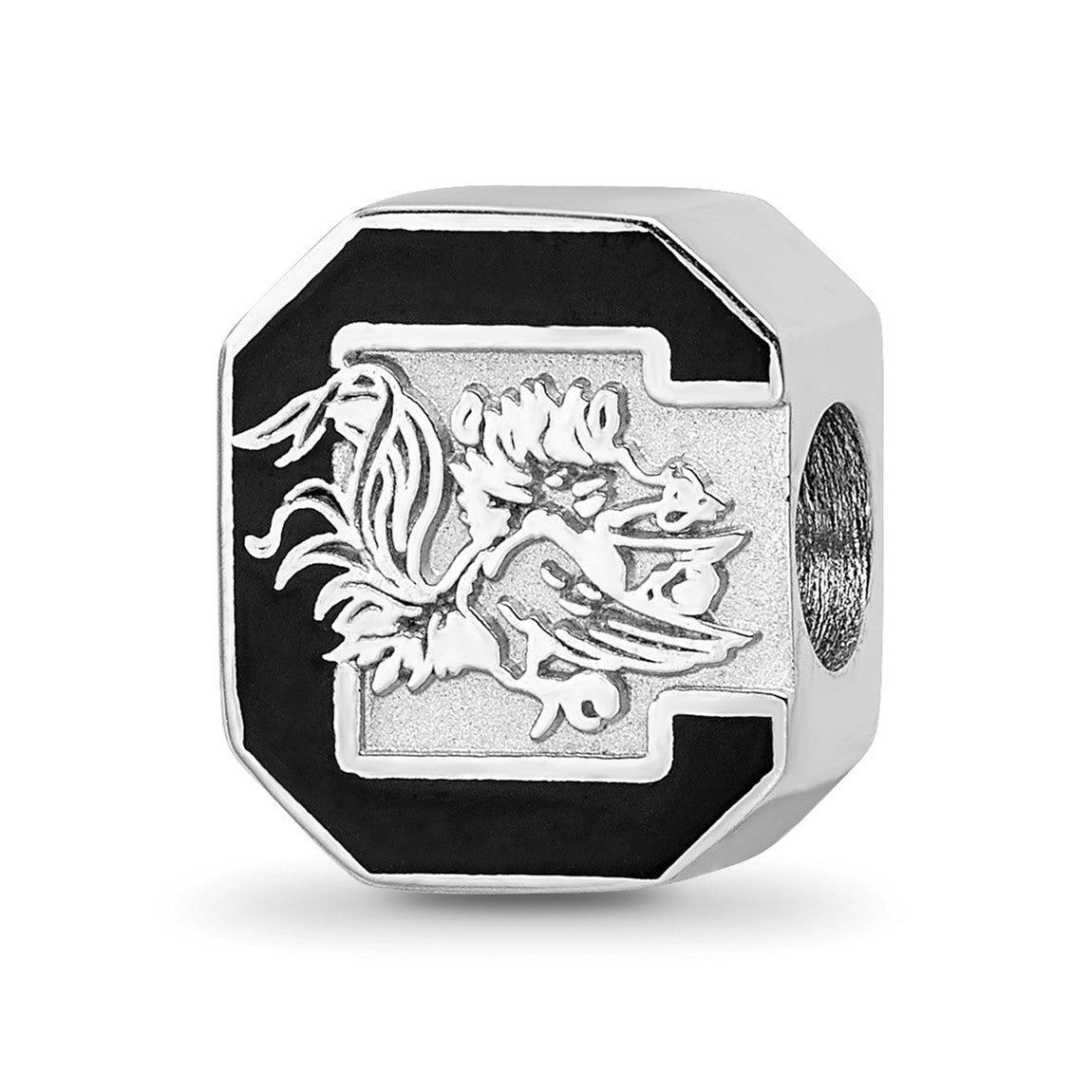 Sterling Silver Rhodium-plated LogoArt University of South Carolina Enameled Logo Bead SS500USO