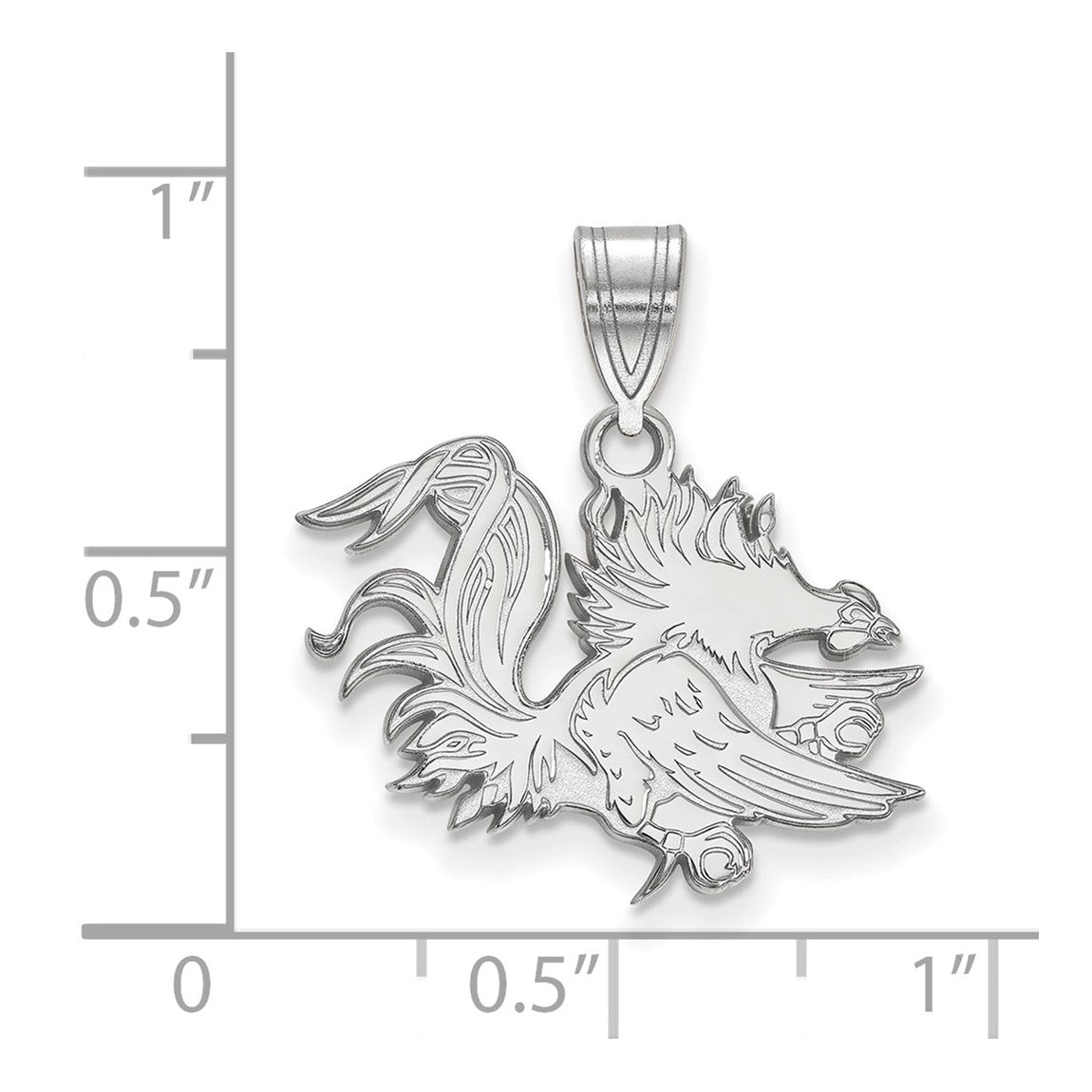 Sterling Silver Rhodium-plated LogoArt University of South Carolina Gamecock Medium Pendant