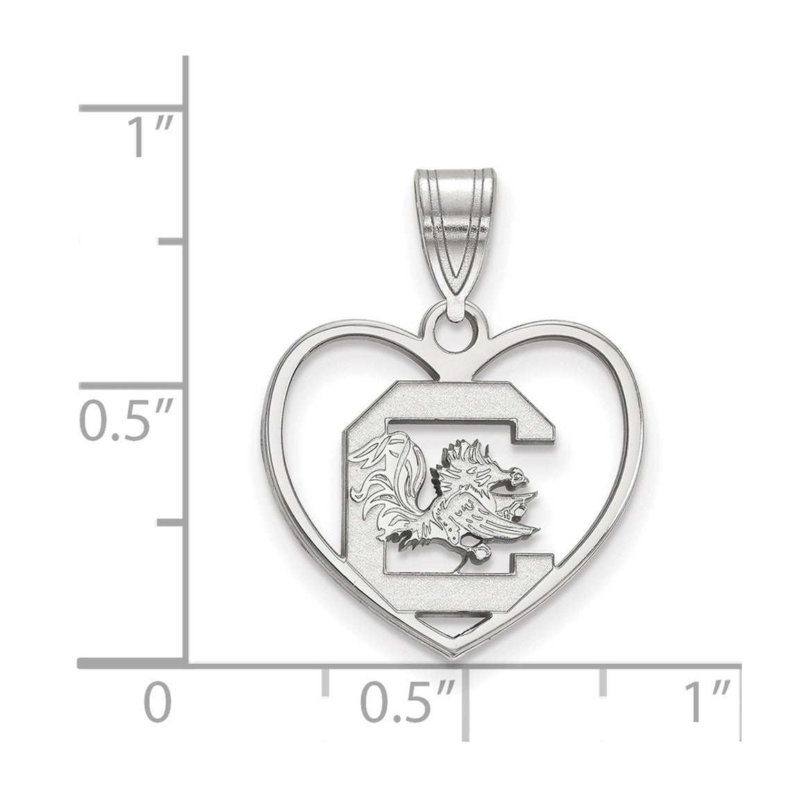Sterling Silver Rhodium-plated LogoArt University of South Carolina Heart Pendant