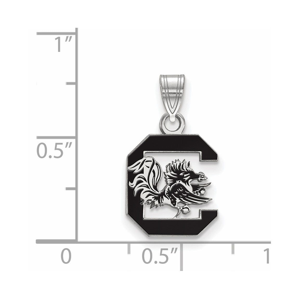 Sterling Silver Rhodium-plated LogoArt University of South Carolina Medium Enameled Pendant