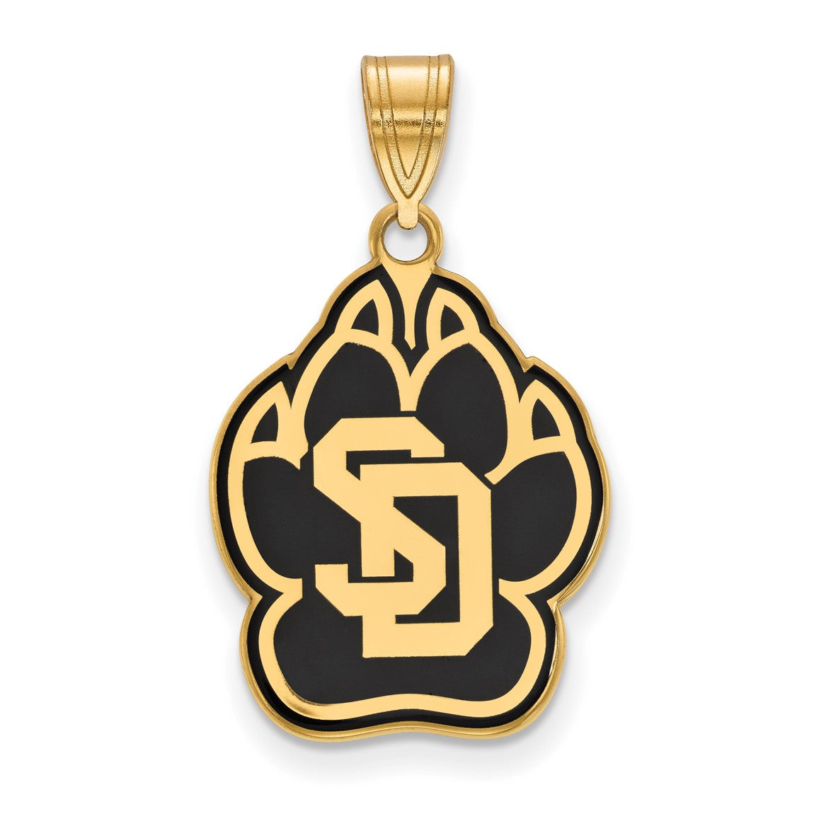 Sterling Silver Gold-plated LogoArt University of South Dakota Large Enameled Pendant