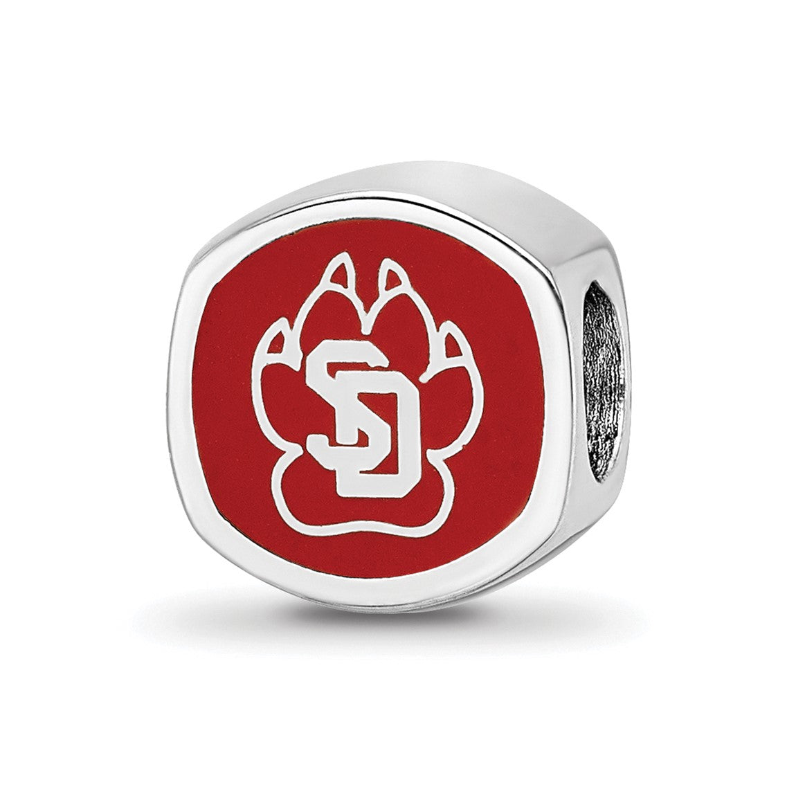 Sterling Silver Rhodium-plated LogoArt University of South Dakota S-D Pawprint 2-sided Enameled Bead