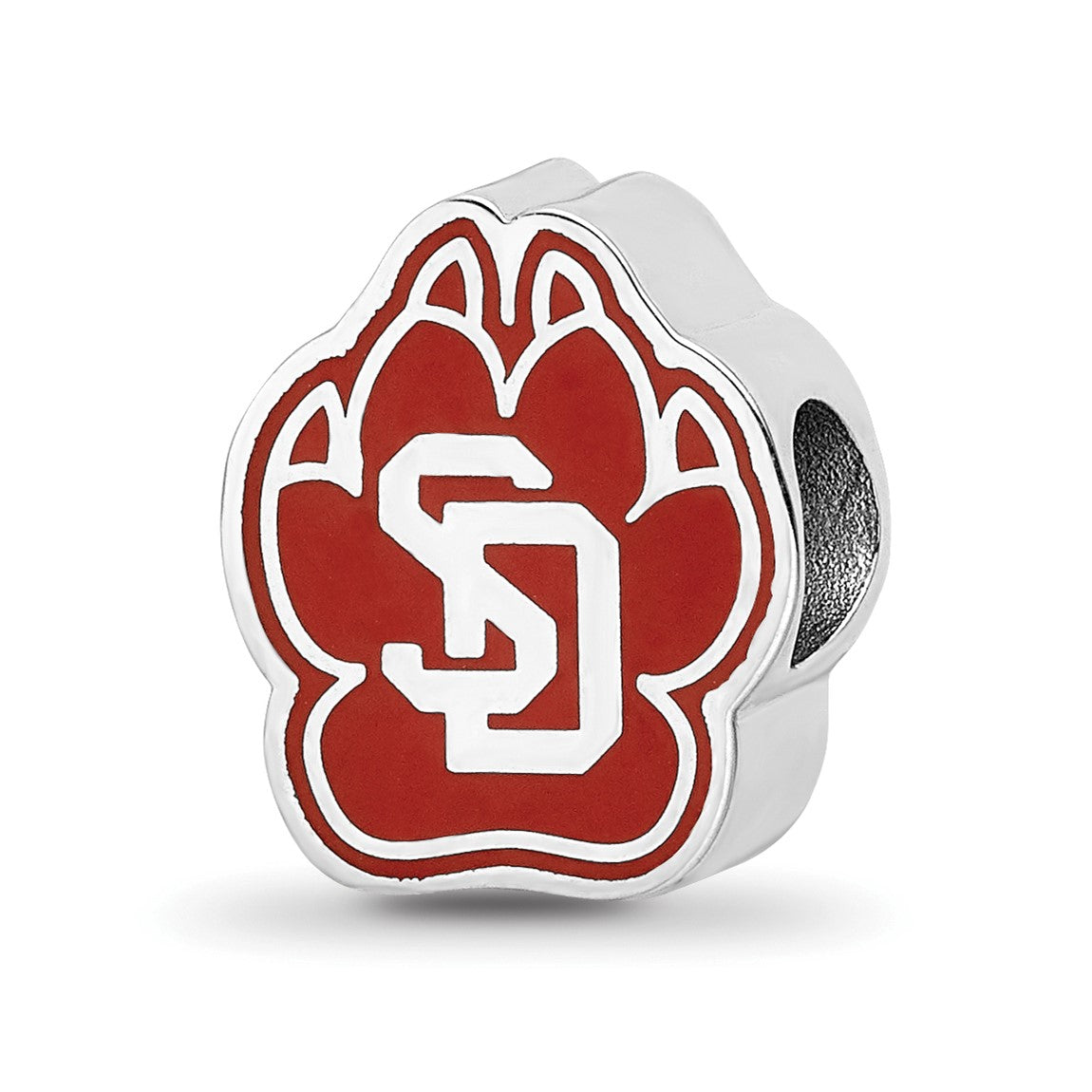Sterling Silver Rhodium-plated LogoArt University of South Dakota S-D Pawprint Enameled Bead