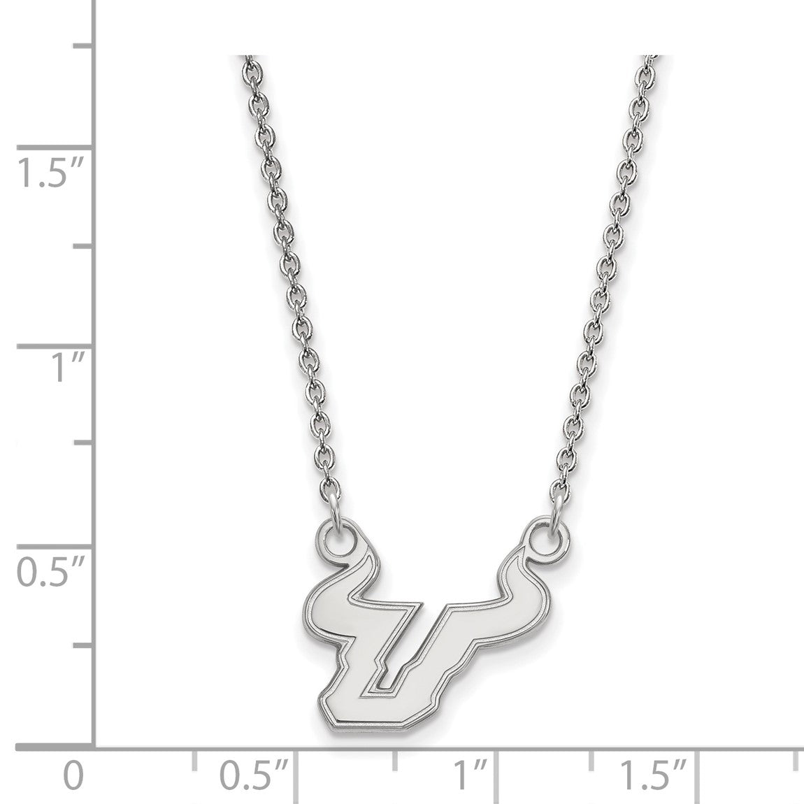 Sterling Silver Rhodium-plated LogoArt University of South Florida Bull Small Pendant 18 inch Necklace