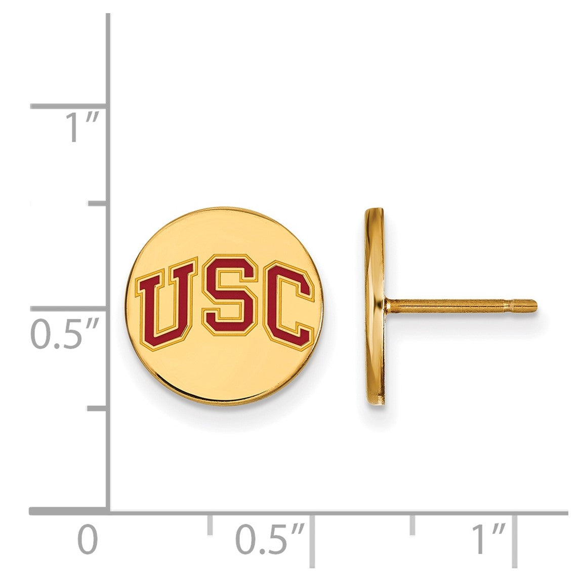 Sterling Silver Gold-plated LogoArt University of Southern California U-S-C Extra Small Enameled Disc Post Earrings