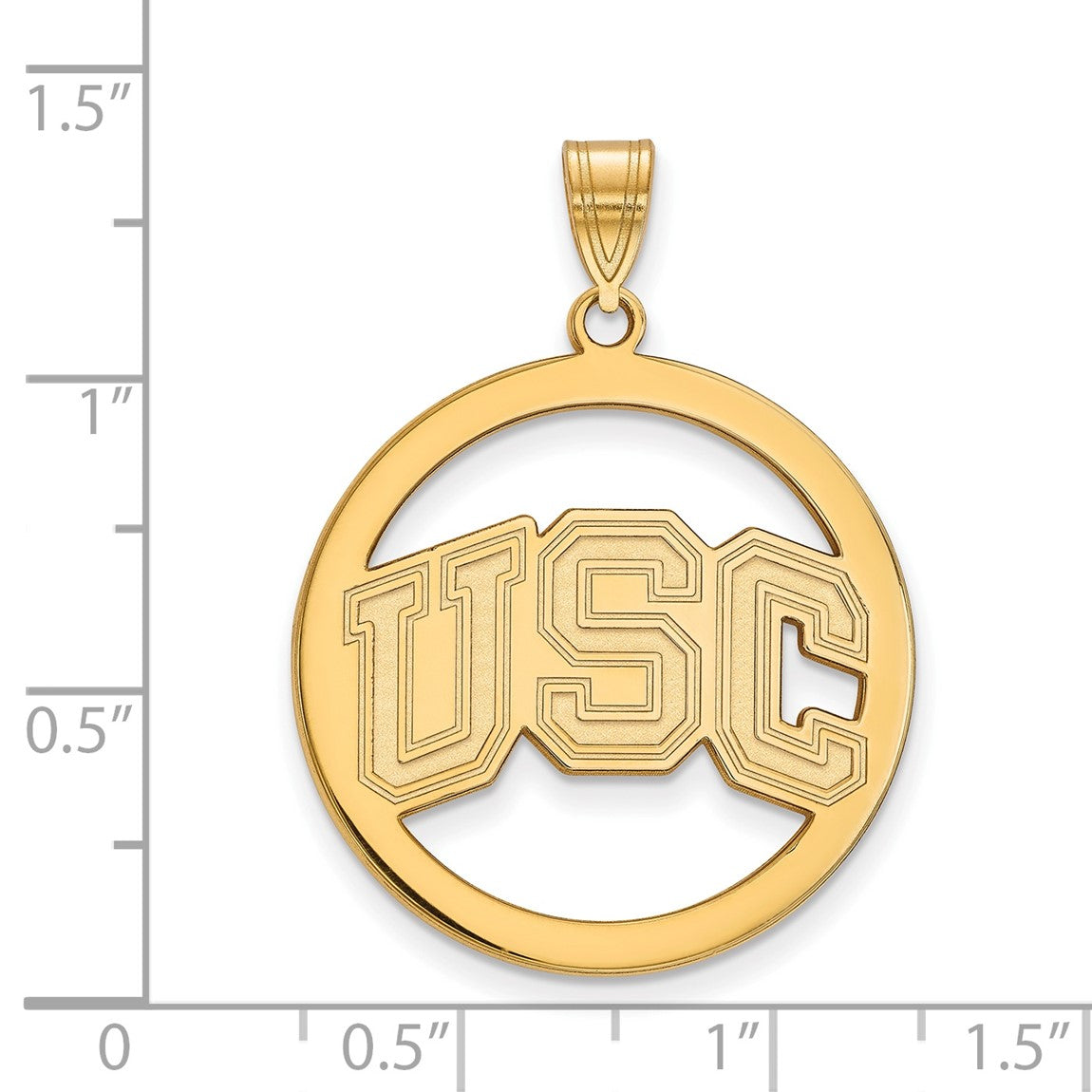 Sterling Silver Gold-plated LogoArt University of Southern California U-S-C Large Circle Pendant