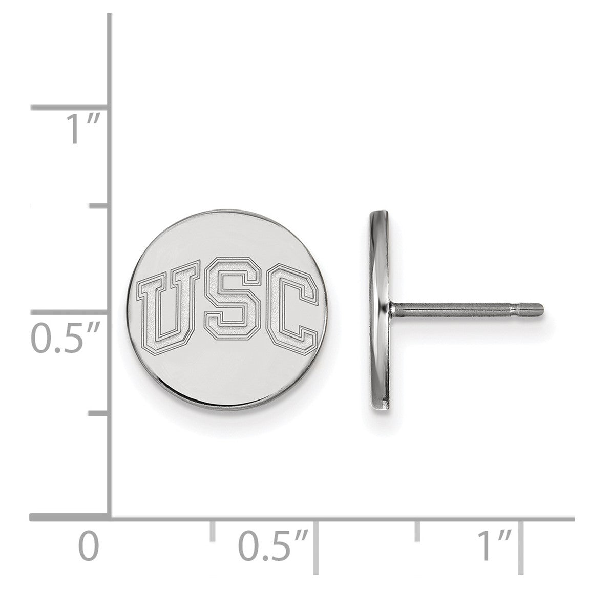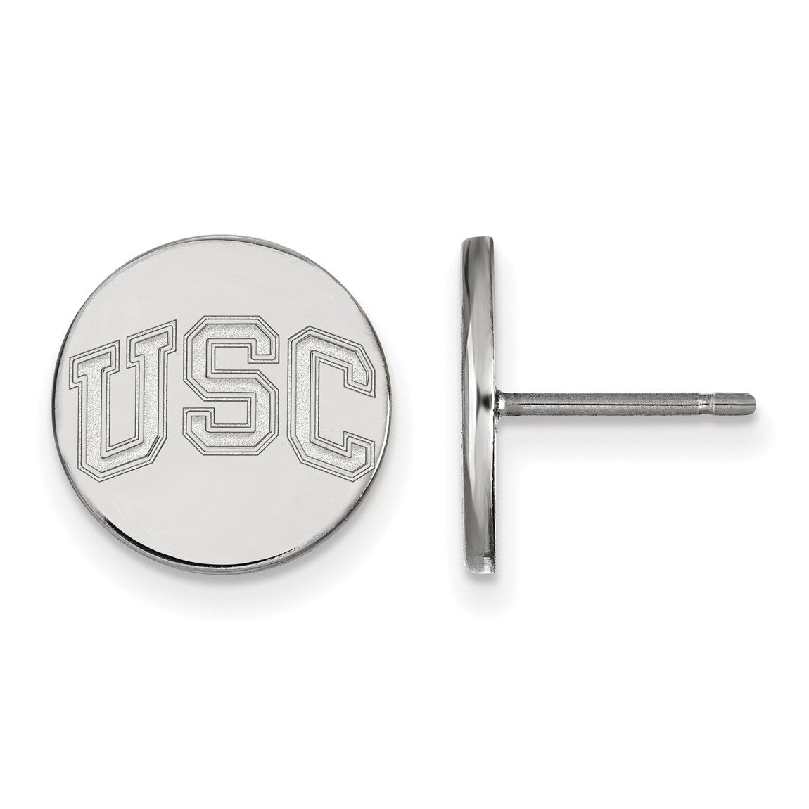 Sterling Silver Rhodium-plated LogoArt University of Southern California U-S-C Extra Small Disc Post Earrings