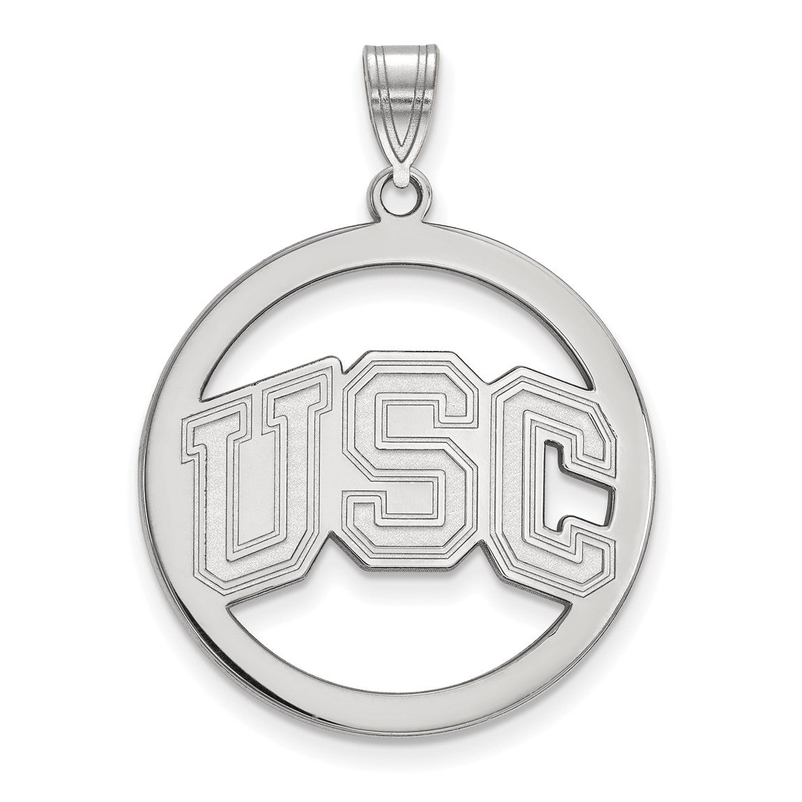 Sterling Silver Rhodium-plated LogoArt University of Southern California U-S-C Large Circle Pendant