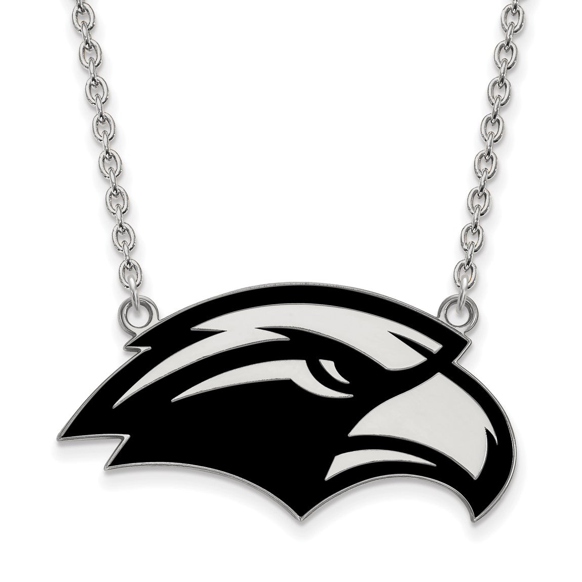 Sterling Silver Rhodium-plated LogoArt University of Southern Mississippi Eagle Large Enameled Pendant 18 inch Necklace